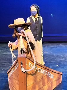 The MHS production starred Iva Knezevic ’24 as John Wesley Powell, with Tati Kheyfets ’23 and Malena Carraro ’24 as William Dunn and John Colton Sumner, Powell’s crewmates on his boat, the “Emma Dean.” Carolin Forssman ’24 and Inyene-Abasi Bell ’25 performed as Old Shady and Bradley, taking “Kitty Clyde’s Sister” downriver.